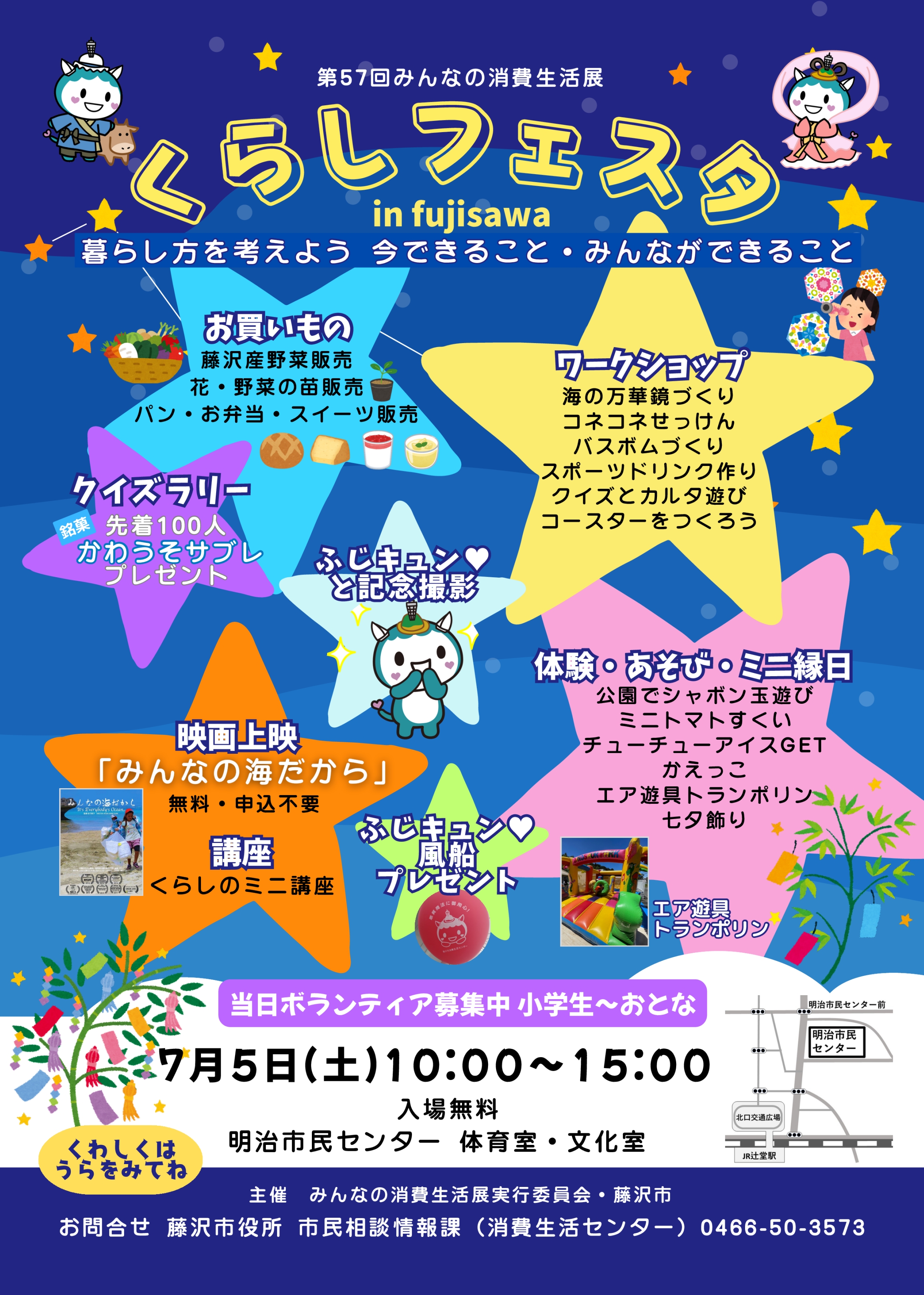 2025年7月5日に開催する第57回消費生活展にて、実行委員と一緒に会場の設営や会場案内をしていただけるボランティアを募集します。