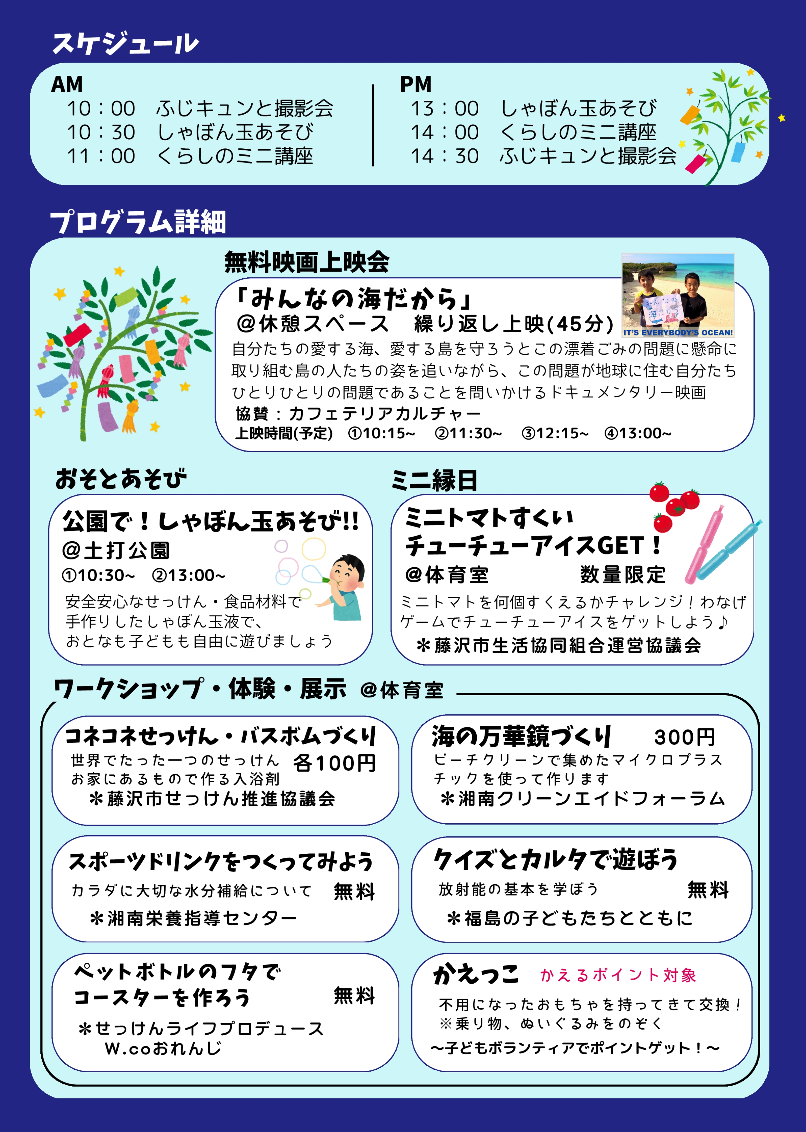 | 特徴 | 実行委員と一緒に活動していただく予定ですので、経験がない方の応募もお待ちしております。 参加いただいた方には心ばかりですが謝礼を用意いたします。 小学生にはかえっこのスタッフを担当していただく予定です。 お手伝いいただいた小学生にはかえっこで利用できるかえるポイントをプレゼントします。 なお、小中学生ボランティアの場合でも保護者の同伴は必須ではありません。 |